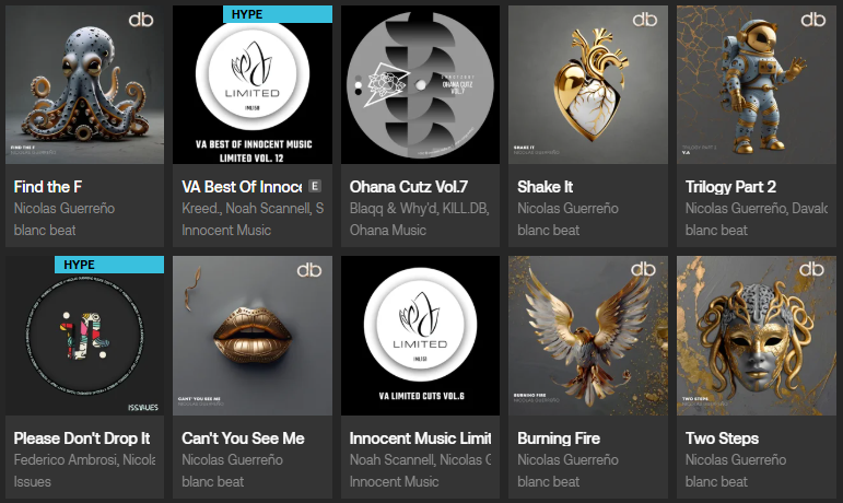 His versatile approach has led to a distinctive style within the minimal/tech-house spectrum. Nicolas has released tracks on prominent labels like Distance , Issues, Cocoa, Ohana music, Habitat, High Pressure Music, Witty Tunes & more. Notable works include Please don't drop it (Issues), Human Groove (High Pressure Music), and Two Steps (Blanc Beat).